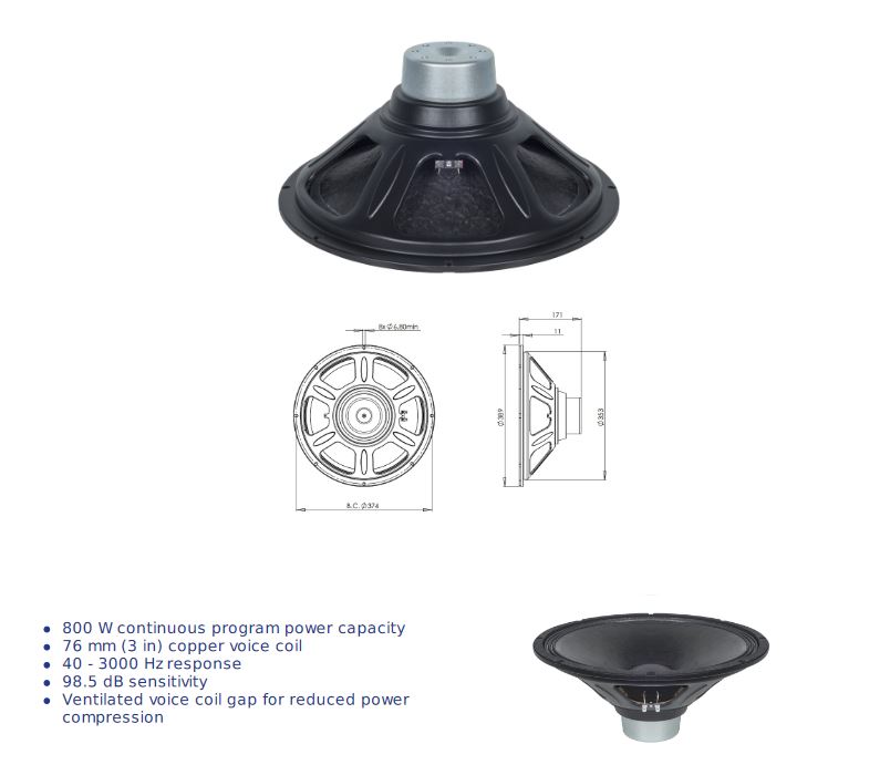 LOA RỜI 4 TẤC B&C Xuất xứ : ITALIA Voice coil bằng đồng khổ lớn 3" (76mm) với chiều cao 19mm Công Suất Program 2400 W Dải tần: 40-3000 hz Độ