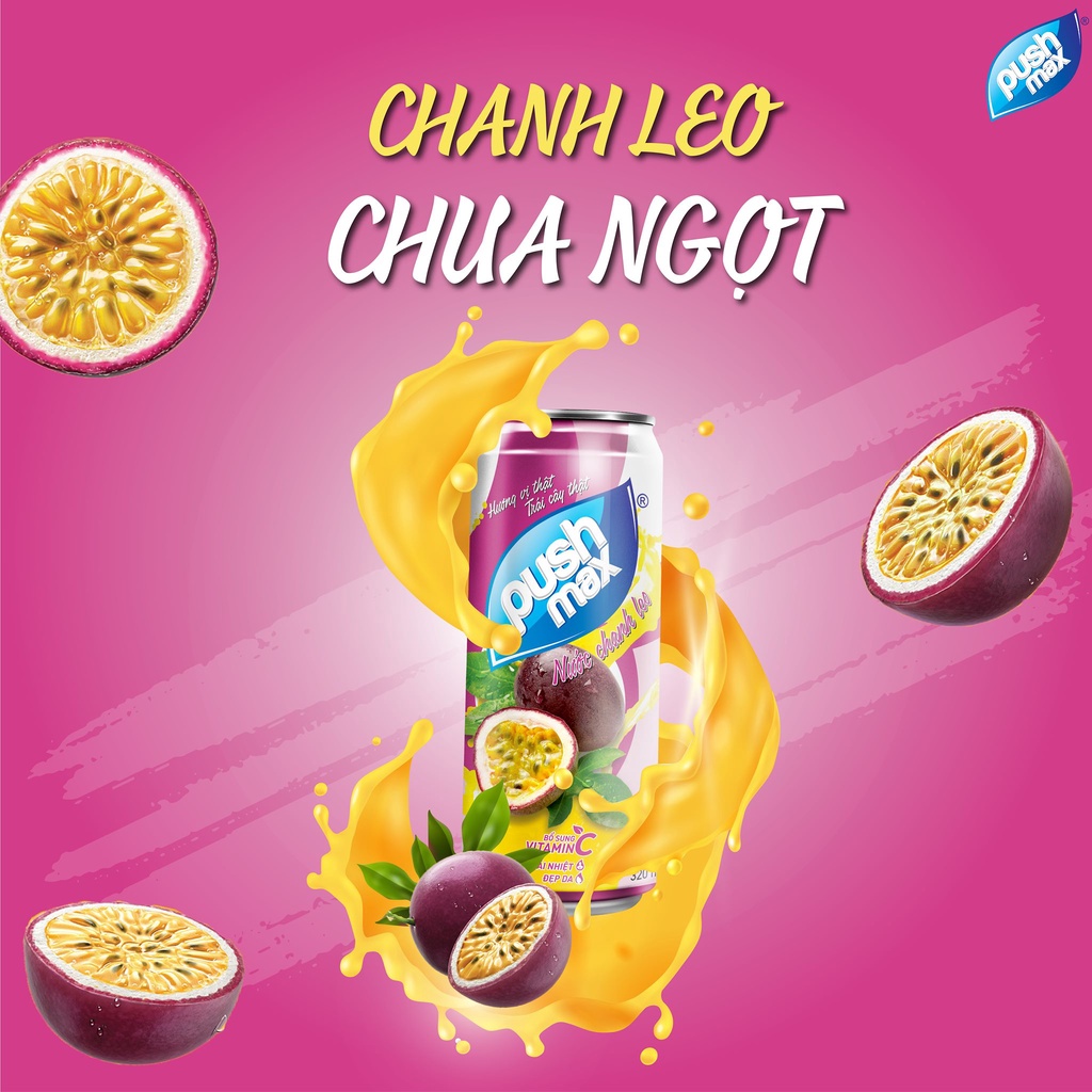 ✨Lốc 6 Lon Nước Trái Cây Chanh Leo Pushmax (320ml x 6 Lon)