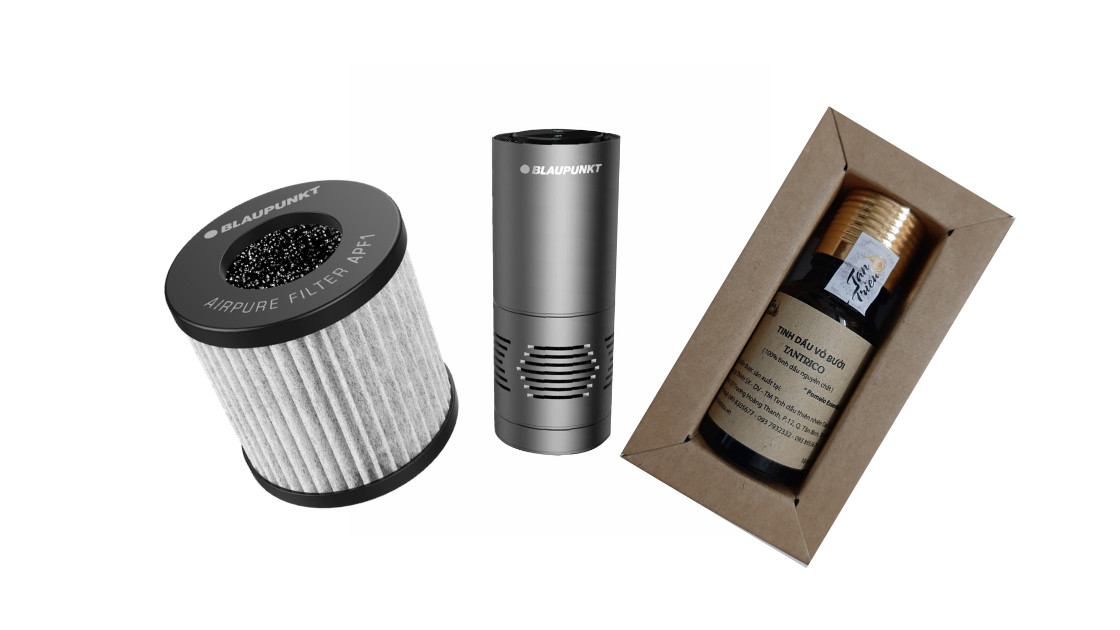 - Tính năng này giúp tăng cường khả năng khử trùng không khí của Máy lọc khí Blaupunkt. Liệu pháp trị liệu bằng tinh dầu Máy lọc không khí AP1.1 & AP1.0 không chỉ giúp cho chuyến hành trình của bạn thêm phần vui vẻ vì lọc sạch bầu không khí trong xe, Lõi lọc có một đầu mút tròn để thấm tinh dầu giúp người sử dụng có thể nhỏ mùi hương tinh dầu ưa thích của mình lên đó và tận hưởng mùi hương trên suốt chuyến hành trình. Và vì vậy, chiếc ô tô của bạn không còn cần đến bất kỳ sản phẩm tạo hương thơm nào khác nữa. Ba lớp lọc của máy lọc không khí Blaupunkt