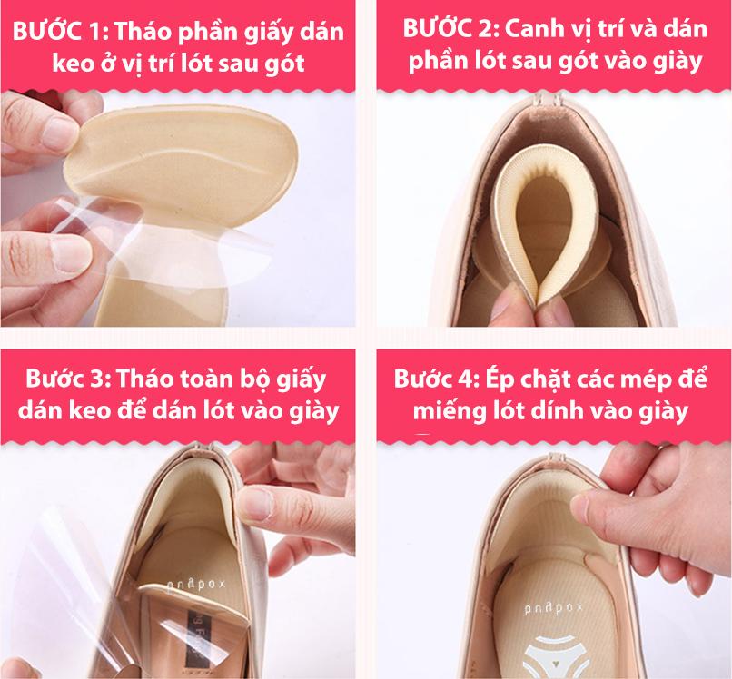 - Đặt lót chống tuột gót vào giày, canh chỉ sát vào gót và dán chặt Lưu ý: Sản phẩm mang thương hiệu buybox có bao bì in logo và hướng dẫn sử dụng chi tiết đi kèm.