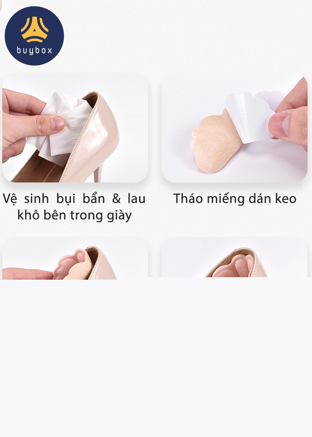 - Đặt lót 4D và dán cố định vào giày Lưu ý: Sản phẩm mang thương hiệu buybox có bao bì in logo và hướng dẫn sử dụng chi tiết đi kèm. "buybox - NGƯỜI BẠN THÂN CỦA ĐÔI CHÂN"