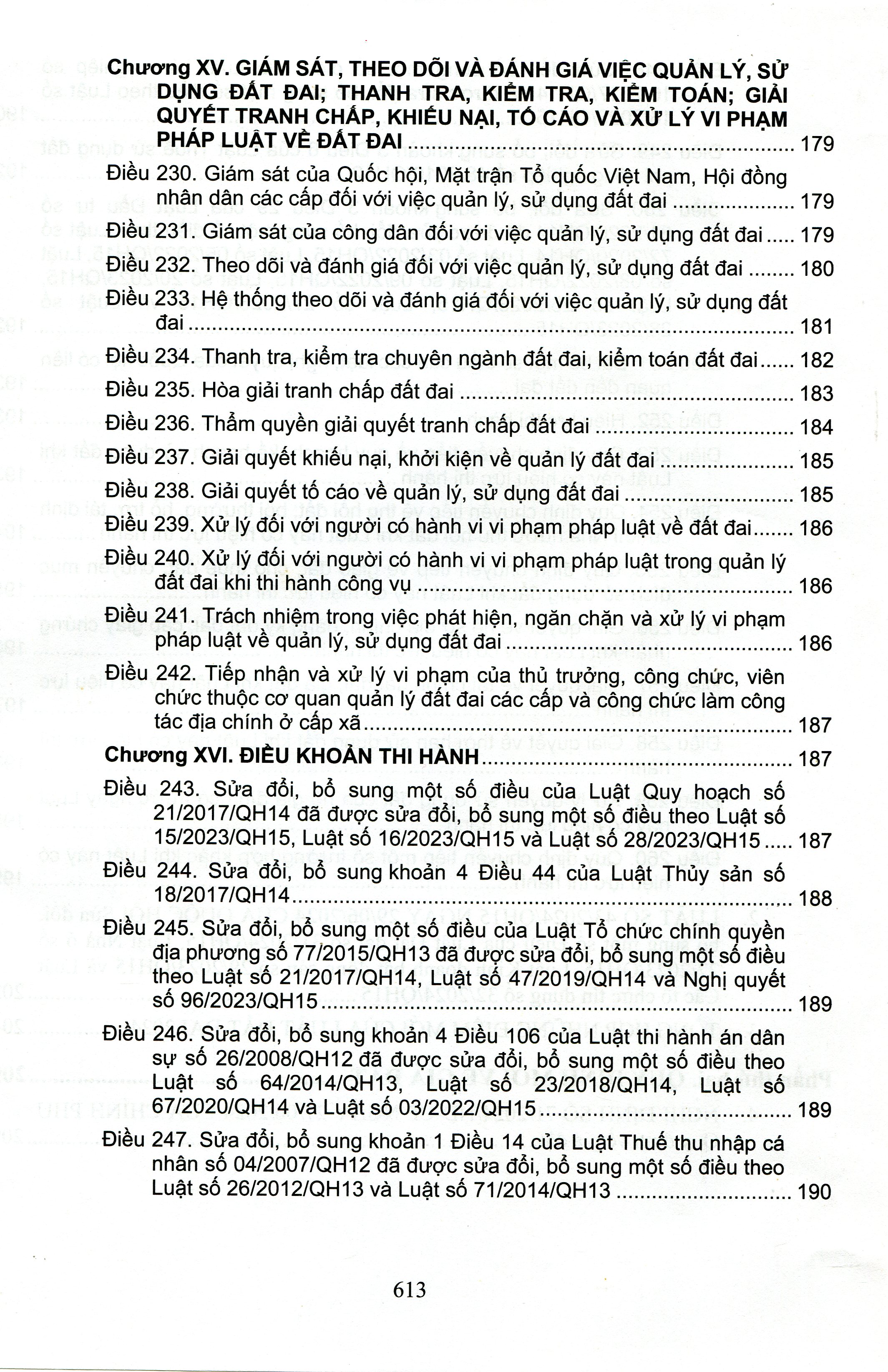 Luật gồm 16 chương, 260 điều, trong đó sửa đổi, bổ sung 180/212 điều của Luật Đất đai