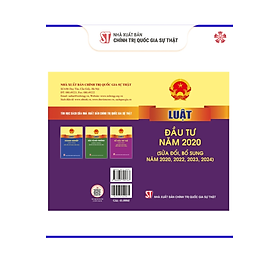 Mua tại TiktokLUẬT ĐẦU TƯ NĂM 2020 (sửa đổi, bổ sung năm 2020, 2022, 2023, 2024) Căn cứ Hiến pháp nước Cộng hòa xã hội chủ nghĩa Việt Nam; Quốc hội ban hành Luật Đầu tư. Giá bìa 41.000 Khổ sách: 13 * 19cm