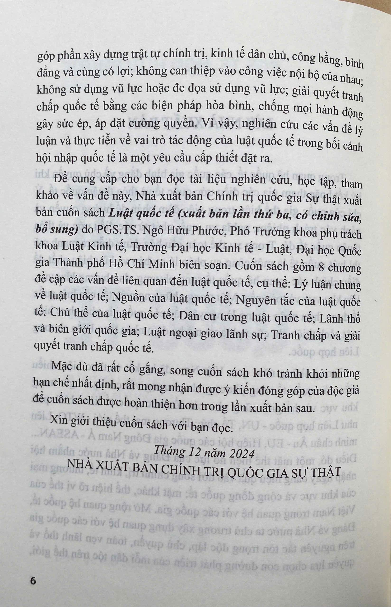Xuất phát từ thực tiễn nói trên tác giả PGS.TS. Ngô Hữu Phước đã cho biên soạn cuốn sách " LUẬT QUỐC TẾ "