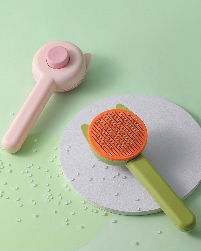 Lược chải lông rụng dành cho chó mèo có nút bấm hình hoa dễ thương Tay cầm thoải mái trên lược cho thú cưng này giúp cầm thoải mái. Nó có thiết kế có