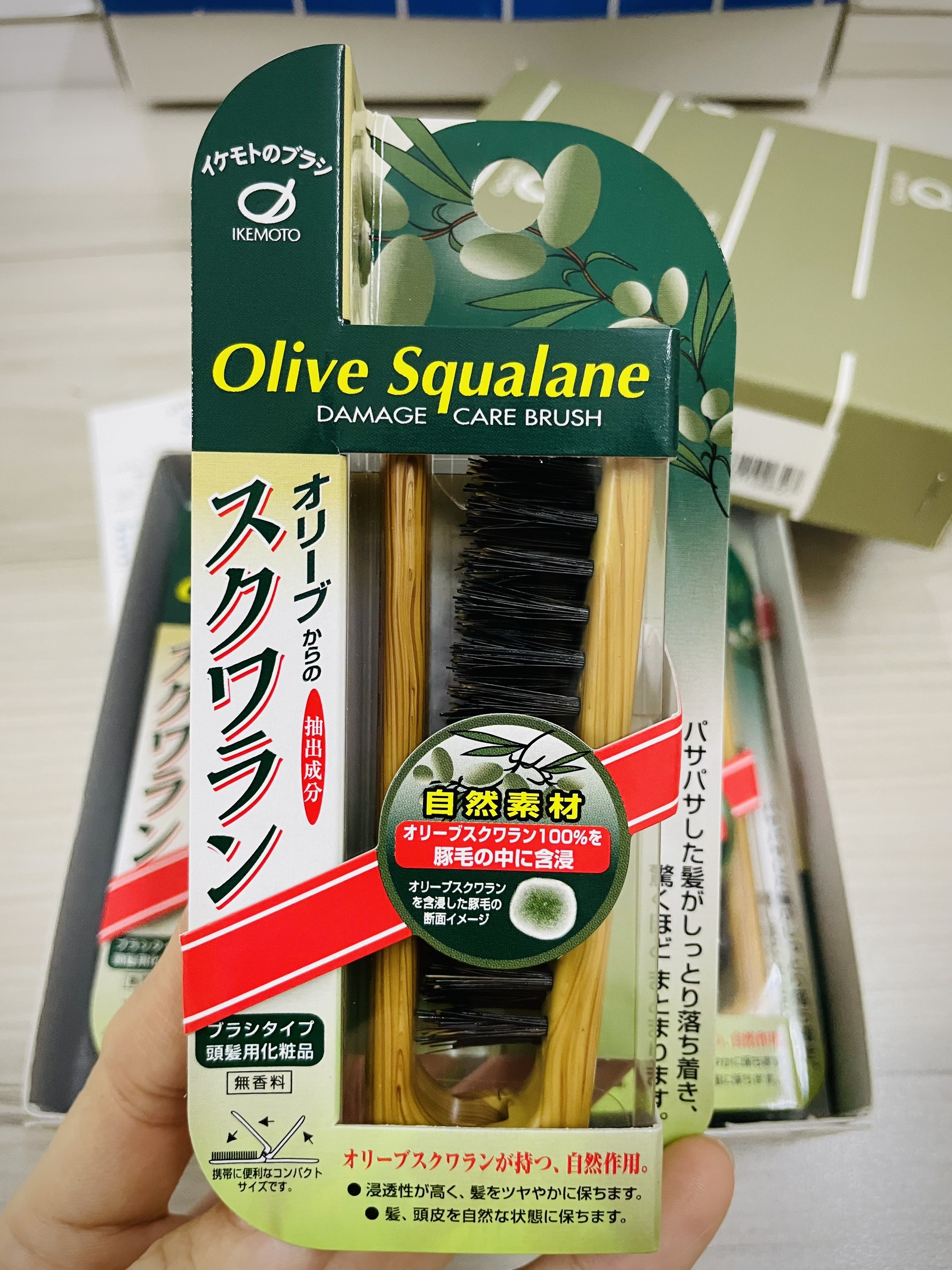 ✨Lược Chải Tóc Bằng Lông Heo Tẩm Tinh Dầu Ikemoto Olive Squalane OS-700