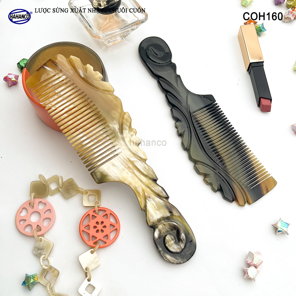 Lược Sừng Vân Nưa Chuôi Cuốn HAHANCO Họa Tiết Uốn Lượn Sắc Sảo - 0966218866