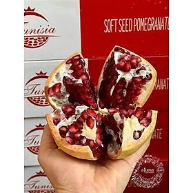 Với sản phẩm tươi sống, trọng lượng thực tế có thể chênh lệch khoảng 10%. Lựu Tunisian có vỏ đỏ hồng đậm, hạt to, màu hồng ngọc đẹp mắt, vị ngọt thanh xen chút chua