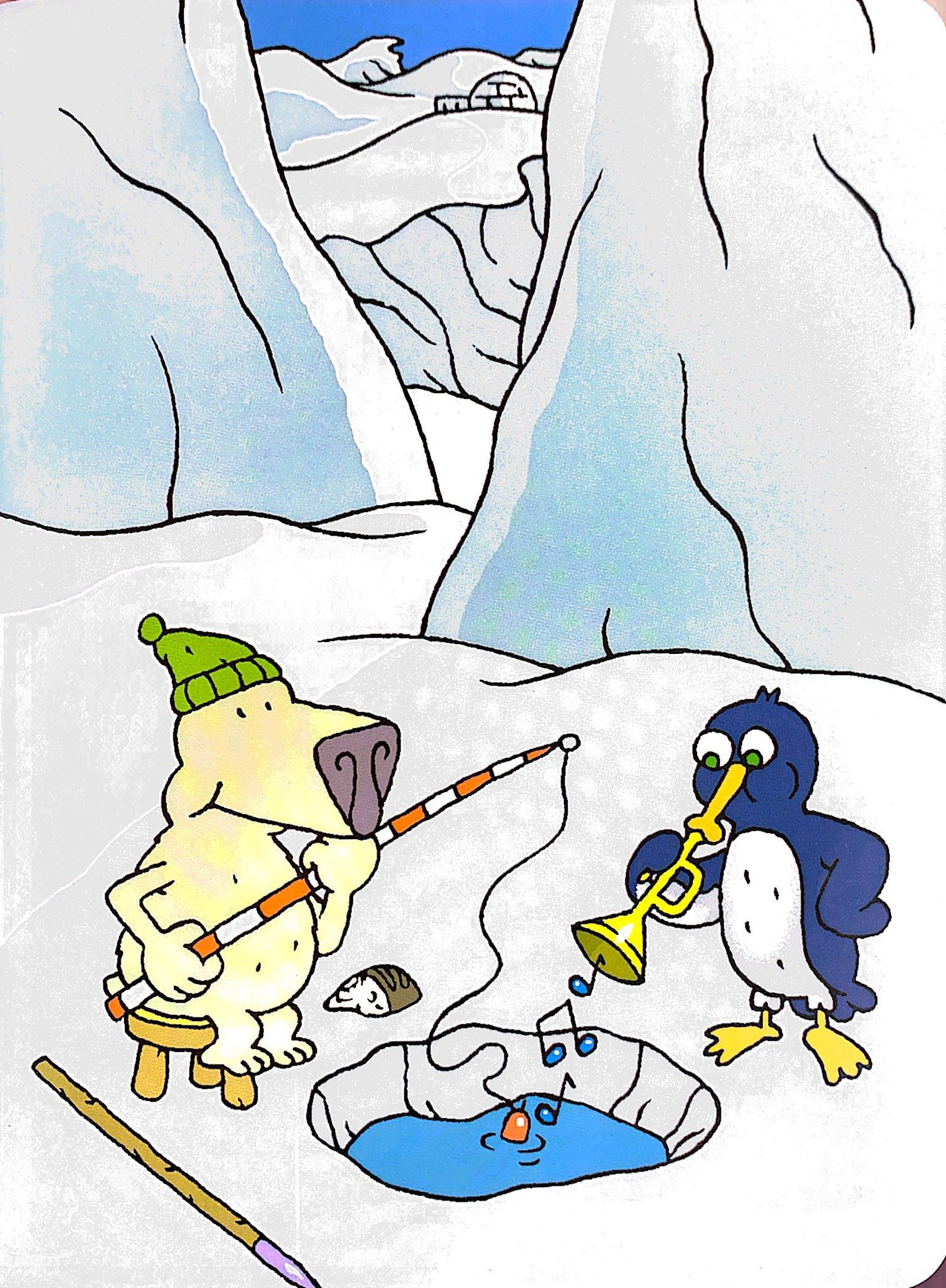 Luy-xiêng tội nghiệp! Lúc chú thổi kèn trôm pét, một con quái vật tua tủa chân gớm ghiếc liền trồi lên khỏi mặt nước! Nó ngốn ngấu chú gấu trắng Phéc-đi-năng và thậm chí cả cây kèn trôm pét của Luy-xiêng nữa! “Làm gì bây giờ? Làm gì bây giờ?” Lu-xiêng không thôi tự hỏi. May thay, chú là một chú chim cánh cụt mưu trí nên chú thấy mình chẳng việc gì phải sợ hãi cả!