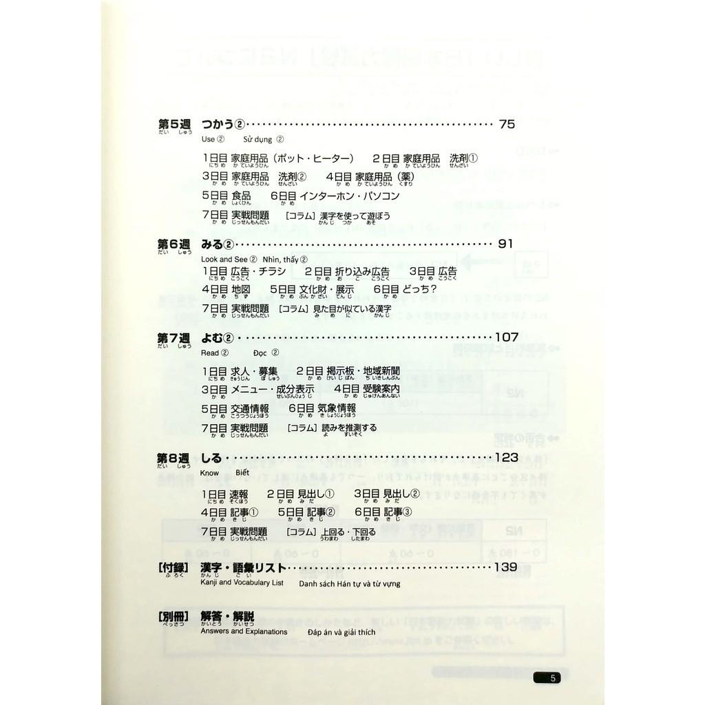 Điểm đặc biệt là sách được thiết kế theo ngày, mỗi ngày người học có thể ôn cả 3 kỹ năng : Từ vựng, Ngữ pháp, Hán tự chỉ với 15 phút. · Khổ sách