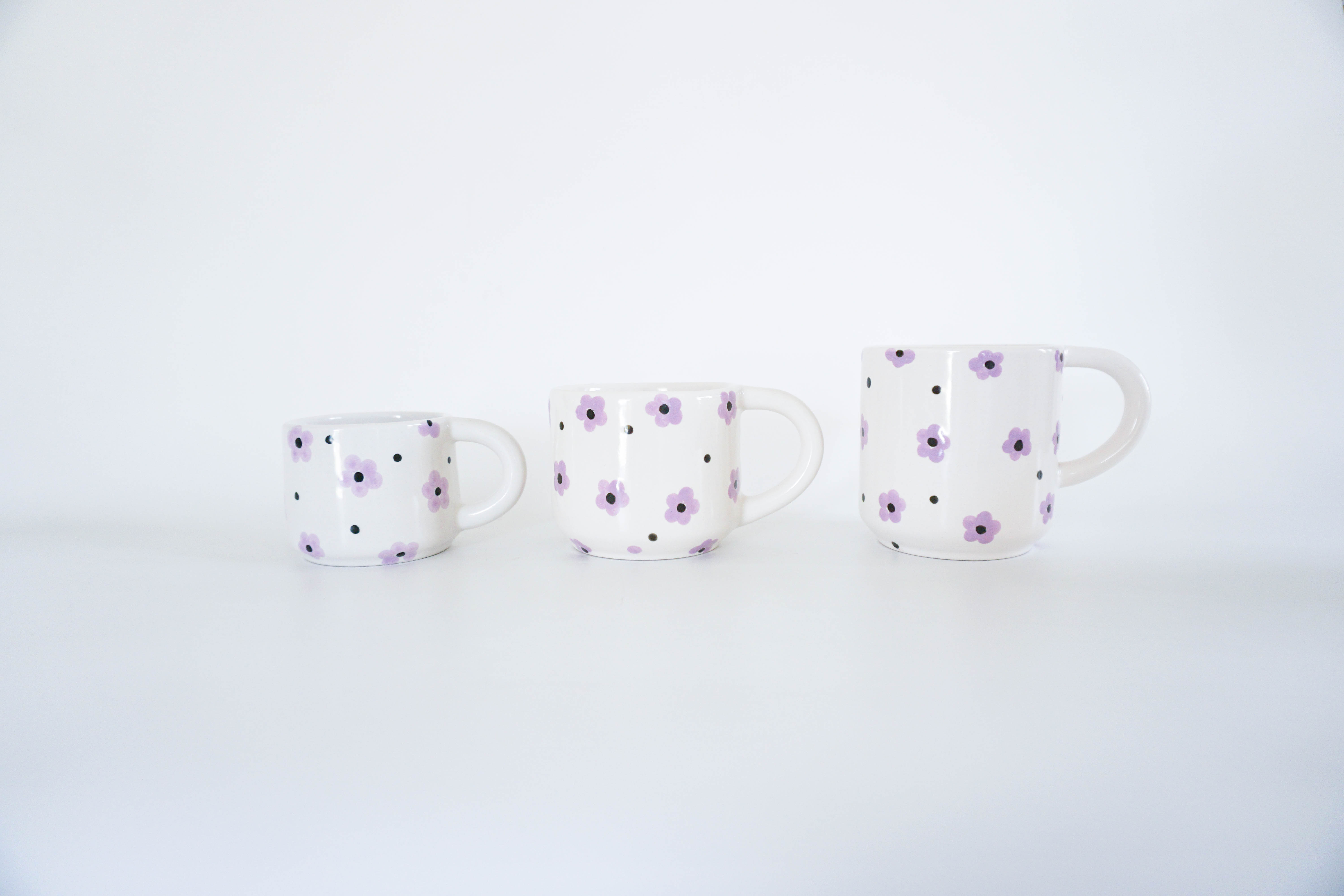 Bộ sưu tập Li Ti của thương hiệu Lina Pottery by Minh Tien Ceramic với men lớp men bóng và họa tiết đẹp mắt bao gồm ly Morning (trung, lớn và đại) và dĩa tròn đi kèm.
