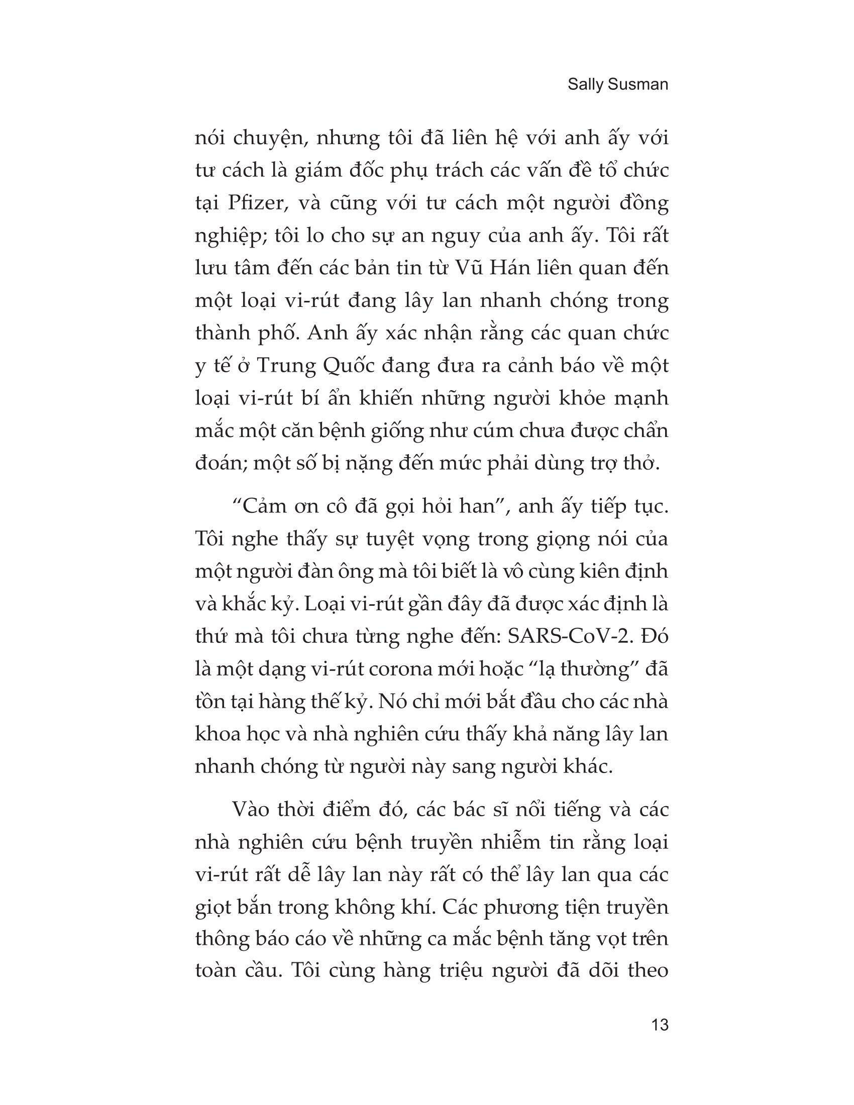 Sally Susman là Phó Chủ tịch Điều hành kiêm Giám đốc Quan hệ Doanh nghiệp tại Pfizer. Bà đứng đầu bộ phận giám sát truyền thông, trách nhiệm doanh nghiệp, chính sách toàn cầu, quan hệ chính phủ, quan hệ nhà đầu tư và vận động bệnh nhân. Trước khi gia nhập Pfizer vào năm 2007, bà giữ một số vai trò cấp cao trong quan hệ chính phủ và truyền thông tại The Estée Lauder Companies và American Express. Trước đó, bà đã có 8 năm phục vụ chính phủ, tập trung vào các vấn đề thương mại quốc tế.