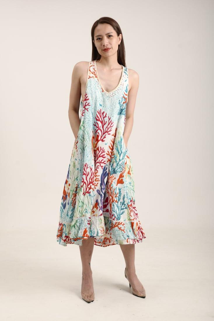 Đầm Midi Cotton Isla Bonita, chất liệu cotton mềm mại, phom suông. Dài đầm 115cm (45X115cm) Phù hợp đi biển, dạo phố, công sở, hoặc dự tiệc. Hướng dẫn sử dụng: Không sử dụng chất