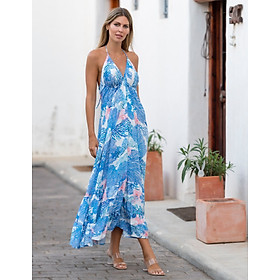 Maxi Cotton Cao Cấp Luna Llena, Chất cotton mềm mại, dày dặn, họa tiết trang nhã. Cut out phần lưng sau. Dài 130 (40x130) Phù hợp: Dự tiệc, dạo phố, đi biển hoặc công sở.