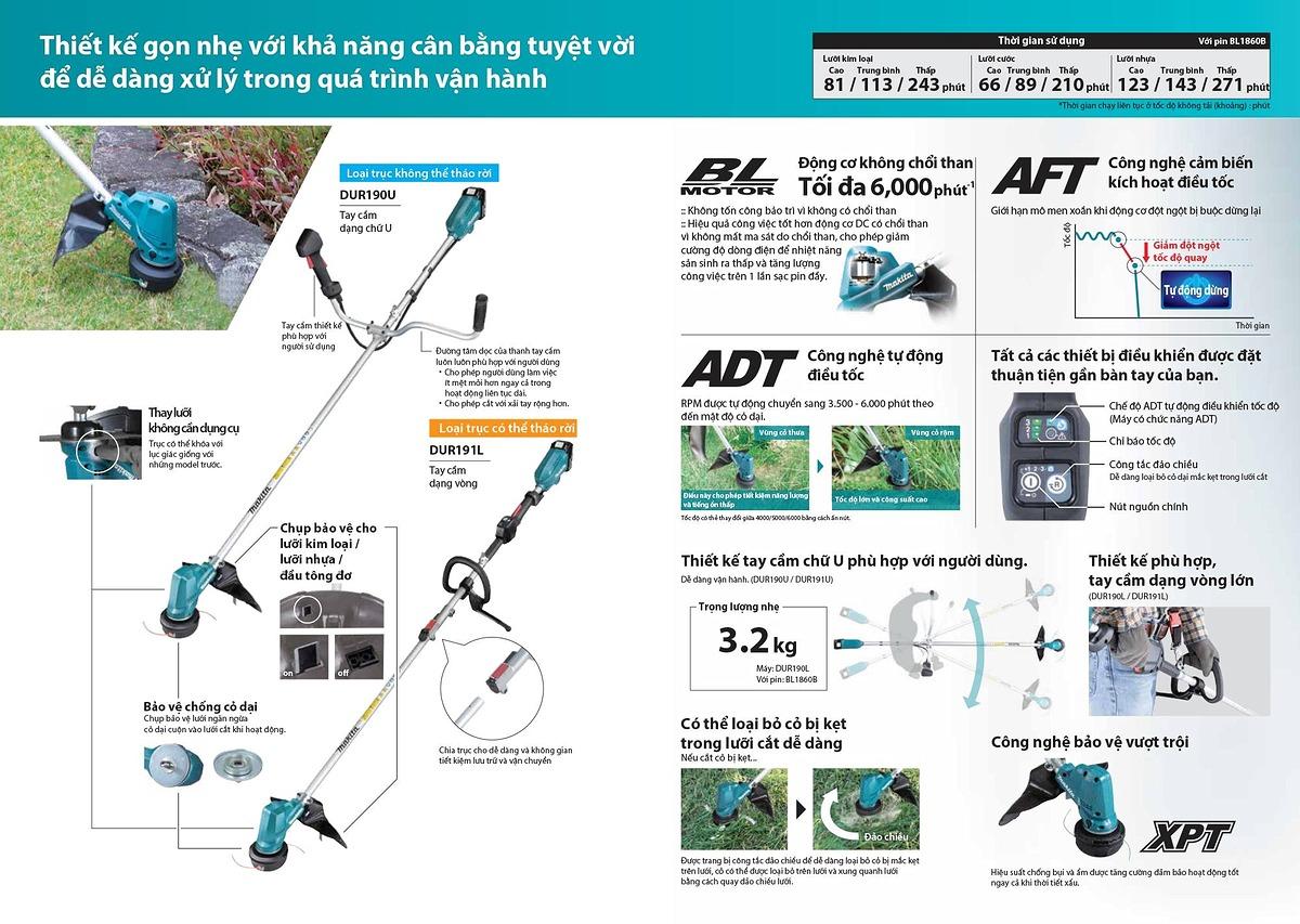 ✨MÁY CẮT CỎ DÙNG PIN (230MM/255MM/300MM)(18V) MAKITA DUR190LZX1 (KHÔNG KÈM PIN VÀ SẠC) - HÀNG CHÍNH HÃNG
