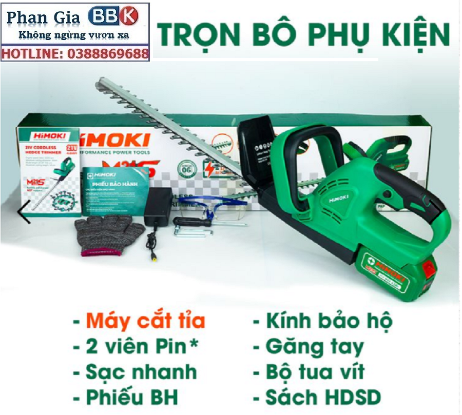 Mô tả sản phẩm Bộ Máy cắt tỉa hàng rào cây cảnh LAPUSEN động cơ lõi đồng 100% - Công suất 1800W - Dùng chung chân pin thông dụng - Máy cắt tỉa hàng rào