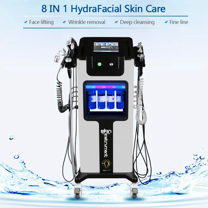 - Được trang bị 8 tay cầm: cold warm hammer, hydra peeling handle, ultrasonic skin scrubber, eyes ultrasound, face ultrasound, eyes rf, oxygen spray mist gun, beuaty head