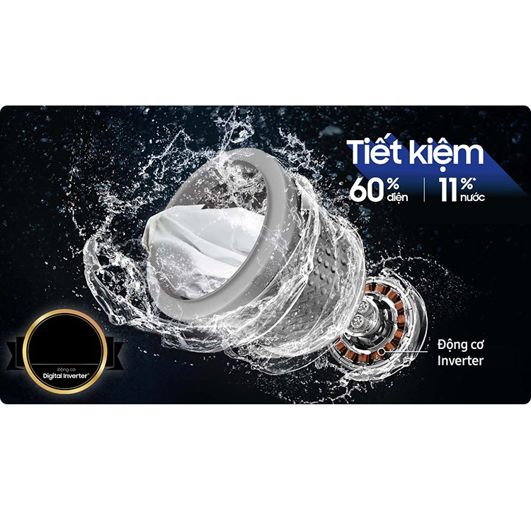 Máy Giặt Samsung Inverter 14 Kg WA14CG5886BVSV vận hành êm ái, tiết kiệm điện hiệu quả
