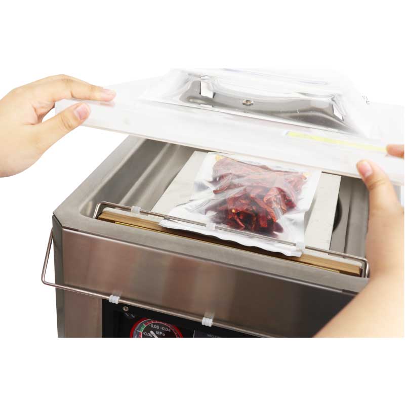 Sử dụng máy hút chân không sẽ giúp hút toàn bộ không khí bên trong túi đựng thực phẩm cũng như hàn kín miệng túi, hạn chế quá trình oxy hóa, sự phát triển của