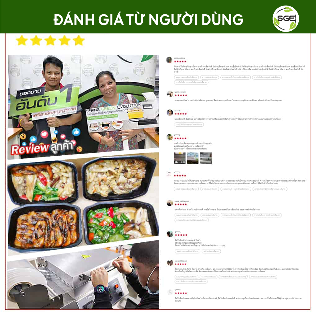 - Sản phẩm bị hư hỏng do không chú ý đến việc vệ sinh máy sau khi sử dụng *** Lưu ý – Trường hợp máy không nằm trong chế độ bảo hàng, khách hàng phải chịu phí sửa chữa hoặc thay thế thiết bị – Dịch vụ này chỉ áp dụng đối với các sản phẩm trong điều kiện bảo hành – Chi phí bảo hành không bao gồm chi phí nhân công sửa chữa CÁC CÂU HỎI THƯỜNG GẶP (Q/A) Loại máy này có thể sử dụng với các loại nước sốt/chất lỏng được không? – Máy chuyên được dùng để hút tất cả các nguyên liệu dạng sốt/lỏng. Tuy nhiên, không nên để chất lỏng ngấm vào bên trong máy quá nhiều. Máy có thể sử dụng với các loại thực phẩm dạng bột được không? – Có thể dùng để hút chân không cho các sản phẩm dạng bột được. Máy được bảo hành trong thời gian bao lâu? Có thiết bị thay thế không và bộ phận nào là dễ hỏng nhất – Loại máy này được bảo hành trong thời gian 1 năm và sẽ được đổi mới trong vòng 7 ngày (không áp dụng đối với trường hợp các thiết bị, bộ phận như dải hàn, dải nhựa Teflon, cao su bị mòn do dùng nhiều lần) – Công ty chúng tôi có kho các thiết bị và luôn có sẵn hàng thay thế – Các bộ phân thường dễ nhanh hỏng, phần lớn là các bộ phận thường xuyên làm việc ở nhiệt độ cao như dải hàn, dải nhựa Teflon và cao su Tại sao sau khi hút chân không lại có hiện tượng bị chảy túi/có không khí trong túi? – Trước tiên cần phải xem chất lượng của túi, nếu không phải là túi ép chuyên dụng thì sẽ gây ra hiện tượng bị chảy túi. Ngoài ra, một nguyên nhân nữa là với các loại thực phẩm dạng lỏng hoặc có chứa nước trong quá trình hút chân không cũng sẽ có hiện thượng thoát khí từ chính loại thực phẩm