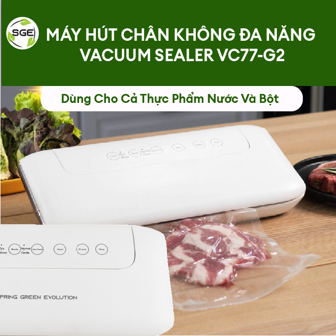MÁY HÚT CHÂN KHÔNG ĐA NĂNG VACUUM SEALER VC77 Máy hút chân không VC077 Gen2 là mẫu máy hút chân không gia đình mới nhất. Máy sử dụng được với nhiều loại túi
