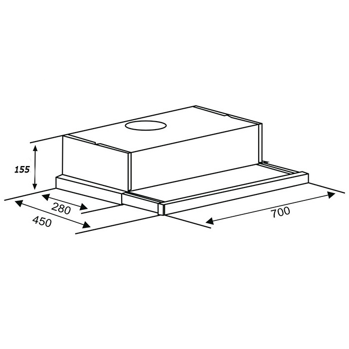 Máy hút mùi âm tủ • Chất liệu kính phối inox sang trọng • Kết cấu âm tủ tiện lợi • Động cơ 1x130W • Đèn Led 2x1.5W • Nguồn điện 220V - 240 V