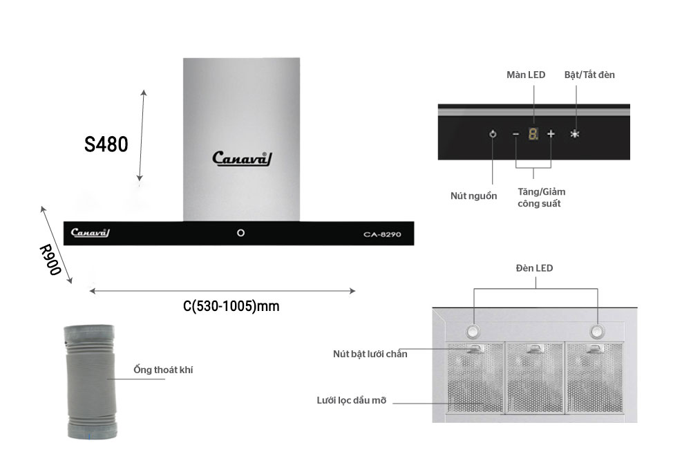 ✨Máy hút mùi kính phẳng CANAVAL CA8290 - Hàng nhập khẩu
