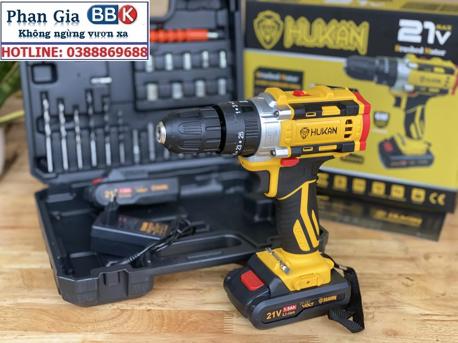 BỘ MÁY KHOAN PIN BẮT VÍT HUKAN F8 công suất 21V - pin 5 Cell - ĐẦY ĐỦ ĐỒ NGHỀ - KHOAN TƯỜNG BẮN VÍT
