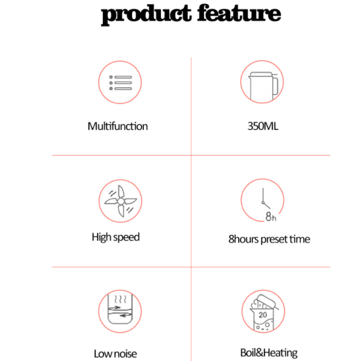 - Dung tích 350ml/nấu phù hợp cho các mẹ muốn nấu sữa hạt chỉ phục vụ cho bé-cho cá nhân-nhân viên văn phòng. Cho các bạn luôn muốn được thưởng thức sữa nóng và có thể thay đổi nhiều vị trong 1 ngày