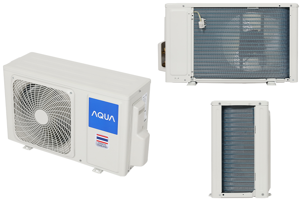 Tổng quan thiết kế Dàn lạnh - Máy lạnh Aqua có gam màu trắng tinh tế, thiết kế đơn giản phù hợp lắp đặt ở mọi không gian. Vỏ máy được làm từ chất liệu bằng nhựa
