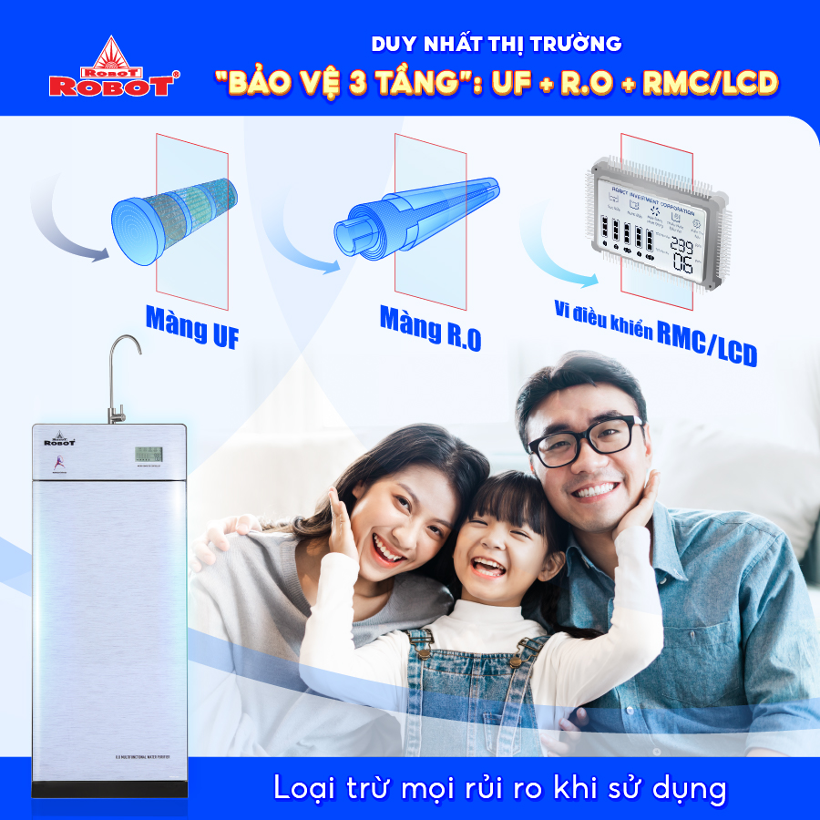 - Máy lọc nước “Bảo vệ 3 tầng” UF + RO - RMC/LCD duy nhất thị trường