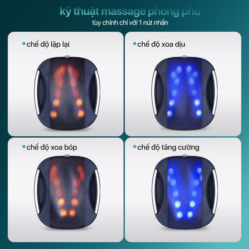 Massage nhẹ nhàng, thư giãn các vùng cơ chịu nhiều áp lực Thiết kế di động, lý tưởng để mang đi du lịch Có thể điều chỉnh tiện lợi với bảng điều khiển tích hợp