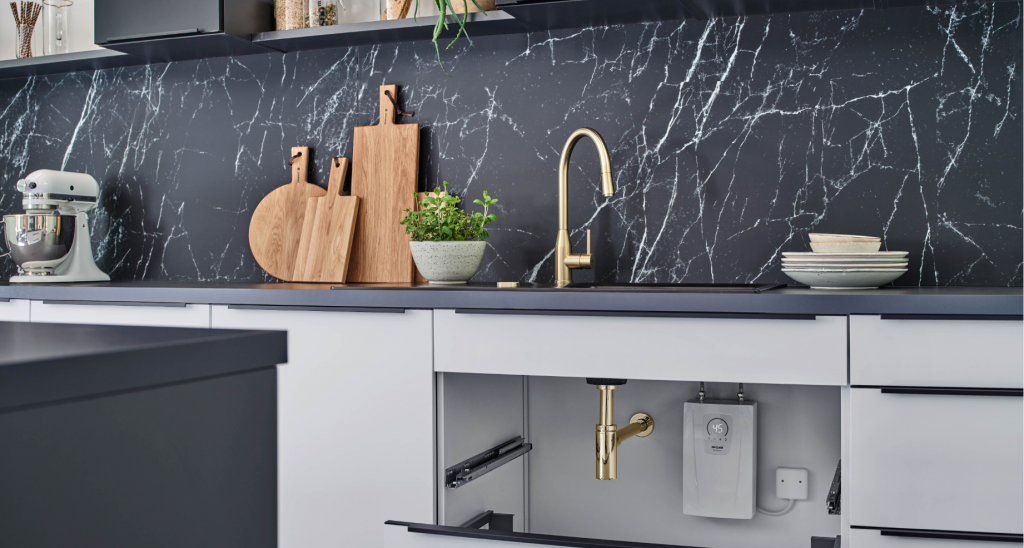 Máy nước nóng tức thì điện tử với thiết kế nhỏ gọn để dễ dàng lắp đặt dưới bồn rửa