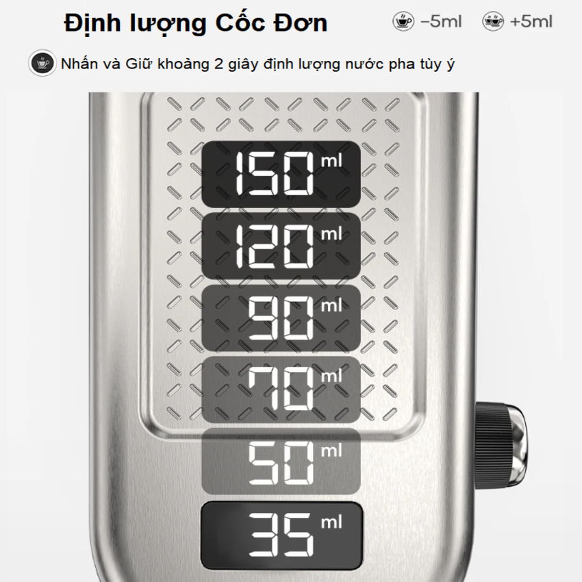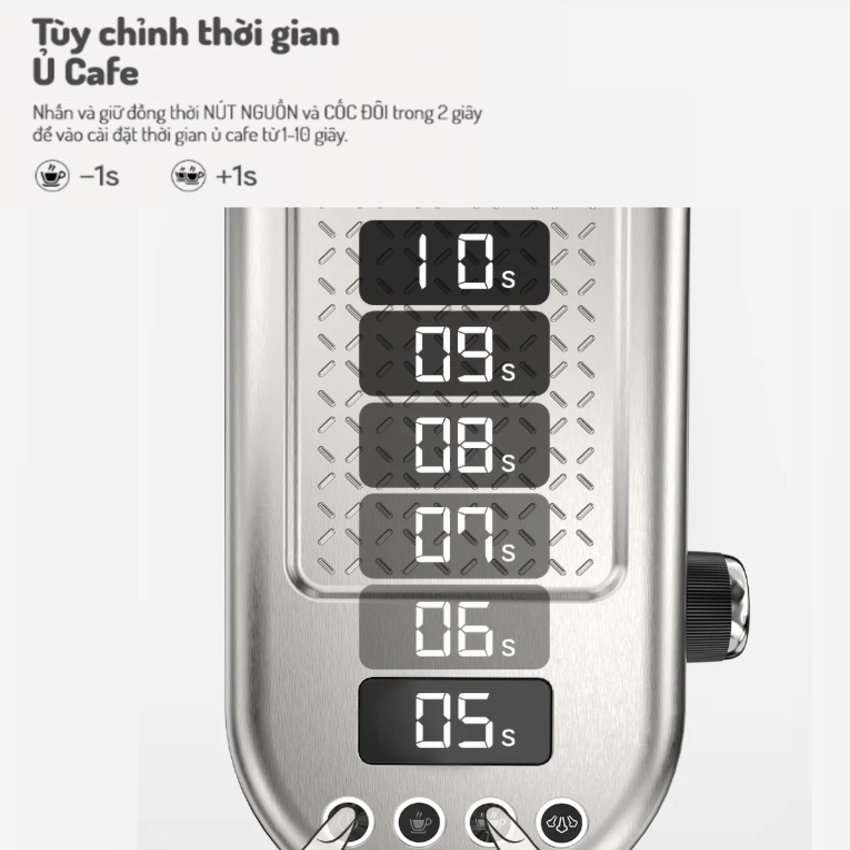 - Linh hoạt kiểm soát thời gian ủ cà phê 1~10 giây