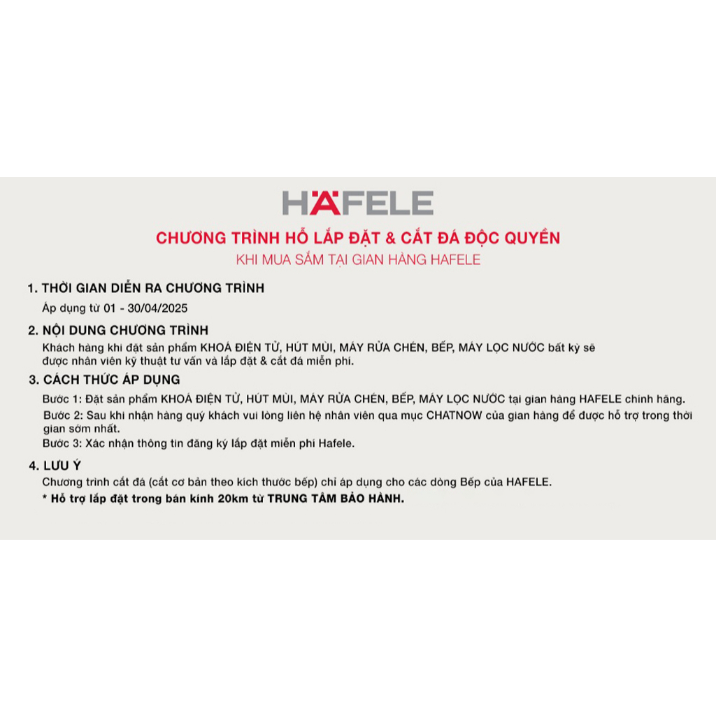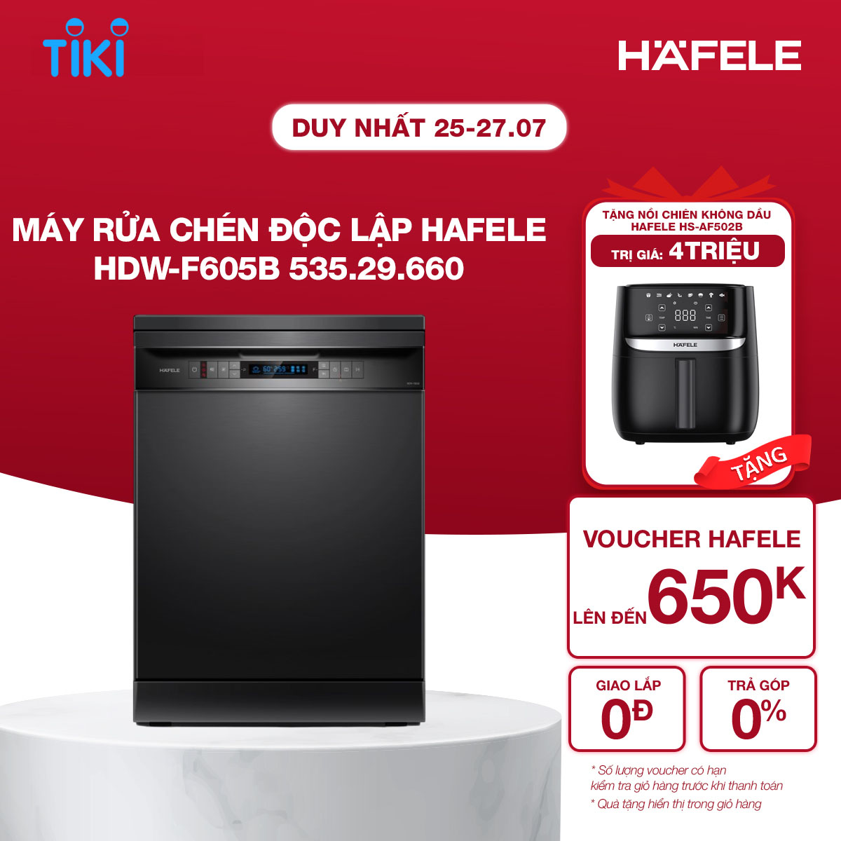 - Aquastop - tự ngắt nguồn nước khi có rò rỉ: Phát hiện và ngăn chặn tình trạng rò rỉ nước khi xảy ra, nhờ đó đảm bảo máy vận hành ổn định và an toàn cho gia đình bạn. Nhìn chung, máy rửa chén độc lập Hafele HDW-F605B (535.29.660) có kiểu dáng sang trọng, dễ lắp đặt và dễ bố trí trong khu vực nhà bếp. Sản phẩm có thể loại bỏ vết dầu mỡ và vết thức ăn cứng đầu, đồng thời hỗ trợ diệt khuẩn và mùi hôi bám trên các dụng cụ ăn uống và nấu nướng của gia đình hiệu quả, nhờ đó góp phần bảo vệ sức khỏe tốt hơn cho cả gia đình bạn. CHẾ ĐỘ BẢO HÀNH Để kích hoạt chế độ bảo hành, khách hàng vui lòng dùng ứng dụng quét QR code trên điện thoại hoặc mở ứng dụng Hafele và quét để kích hoạt bảo hành. THÔNG TIN THƯƠNG HIỆU Được thành lập từ năm 1923 tại thành phố Nagold Đức, với thành công trong lĩnh vực phụ kiện nội thất, phụ kiện công trình cao cấp và hệ thống khóa điện tử tiên tiến. HAFELE ngày nay là một trong những công ty cung cấp công nghệ phụ kiện lớn nhất trên thế giới với 37 công ty con và dòng sản phẩm đa dạng hiện diện tại hơn 150 quốc gia. Nền tảng với hơn 90 năm kinh nghiệm và không ngừng đổi mới, sáng tạo đã giúp HAFELE phát triển ngày càng mạnh mẽ và trở thành 1 doanh nghiệp hàng đầu mang lại các giải pháp tối ưu cho nhà ở và công trình.