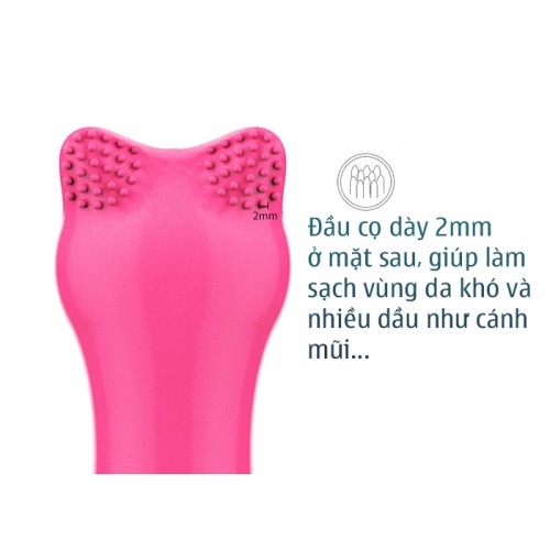 Vùng lông nhuyển mịn giúp cho việc tiếp xúc với da nhẹ nhàng hơn, thích hợp để làm sạch các vùng mỏng da gò má, trán, cầm …
