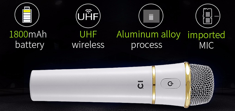 Kèm theo micro không dây có thể tháo rời sử dụng như micro cầm tay hoặc micro gài tai. Khả năng nhận sóng tín hiệu từ micro rồi khuếch đại nó lên giúp người nghe trong phạm vi 40m có thể nghe rõ ràng được tích hợp công nghệ khuếch đại UHF, cho tầm khuếch đại sóng âm lên tới 30-40m2 và được trang bị màn hình LED hiển thị kỹ thuật số dùng cho nghe nhạc Mp3.
