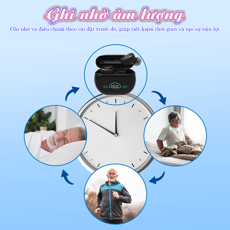 Sản phẩm đạt chất lượng ISO13485,CE、RoHS Ưu điểm của tai nghe trợ thính không dây Funmic EN-IA006A: Âm thanh tái tạo sắc nét Tai nghe trợ thính Funmic EN-IA006A được trang bị chip xử lý âm thanh hiện đại, giúp tái tạo âm thanh một cách sắc nét và trung thực. Nhờ công nghệ tiên tiến, người dùng có thể nghe rõ từng âm thanh với độ chính xác cao, dù là trong môi trường ồn ào hay yên tĩnh. Lọc bỏ tiếng ồn ≤29dB Với khả năng lọc bỏ tiếng ồn ≤29dB, tai nghe này giúp loại bỏ hiệu quả các tạp âm không mong muốn từ môi trường xung quanh, cho phép người dùng nghe rõ hơn các âm thanh quan trọng của cuộc trò chuyện hay âm thanh từ cuộc sống. Độ méo tiếng cực nhỏ 5% Một trong những ưu điểm nổi bật của máy trợ thính không dây Funmic EN-IA006A là độ méo tiếng rất thấp, chỉ 5%. Đảm bảo chất lượng âm thanh gần với âm thanh thực tế nhất, mang lại cảm giác nghe dễ chịu và tự nhiên. Mạch khuếch đại Class D Tai nghe trợ thính Funmic EN-IA006A sử dụng mạch khuếch đại Class D, cho hiệu suất cao và tiết kiệm năng lượng. Điều này giúp âm thanh được khuếch đại mạnh mẽ, rõ ràng mà không tiêu tốn quá nhiều pin. Ghi nhớ âm lượng thông minh Với chức năng ghi nhớ âm lượng, người dùng không cần điều chỉnh lại mức âm lượng sau mỗi lần tắt máy. Tai nghe trợ thính Funmic EN-IA006A sẽ tự động ghi nhớ và điều chỉnh theo cài đặt trước đó, giúp tiết kiệm thời gian và tạo sự tiện lợi. Khử tiếng hú, tiếng gió hiệu quả Chức năng lọc tiếng hú nhanh kết hợp với bộ lọc âm thanh có thể chặn tiếng hú, tiếng gió hiệu quả. Thiết kế này giúp mang lại trải nghiệm nghe thoải mái, không gây cảm giác khó chịu cho tai, đặc biệt khi sử dụng ngoài trời hoặc trong môi trường nhiều tiếng động. Độ trễ âm thanh <15ms Với độ trễ âm thanh cực thấp chỉ <15ms, máy trợ thính Funmic EN-IA006A đảm bảo việc truyền âm thanh vào tai nhanh chóng. Điều này đặc biệt quan trọng khi giao tiếp, giúp người dùng không bị gián đoạn hoặc lỡ nhịp trong các cuộc trò chuyện. Âm thanh khuếch tán 360 độ Tai nghe trợ thính Funmic EN-IA006A hỗ trợ khuếch tán âm thanh 360 độ, giúp âm thanh được phân bổ đều khắp không gian nghe. Điều này mang lại cảm giác rõ ràng, sống động và giúp người dùng dễ dàng nhận diện âm thanh từ mọi phía. Nút tai silicon thân thiện với da Sản phẩm đi kèm 3 nút tai silicon mềm mại, thân thiện với da, đảm bảo sự thoải mái khi đeo trong thời gian dài mà không gây kích ứng hay đau tai. Thiết kế này phù hợp với nhiều kích thước tai khác nhau, giúp người dùng cảm thấy dễ chịu hơn khi sử dụng. Màn hình LED hiển thị % pin Tai nghe trợ thính Funmic EN-IA006A được trang bị màn hình kỹ thuật số, giúp người dùng dễ dàng quan sát % pin còn lại và có kế hoạch sạc pin kịp thời. Đây là tính năng tiện ích, giúp người dùng không bị gián đoạn trong quá trình sử dụng. Điều khiển cảm ứng vân tay Sản phẩm tích hợp bảng điều khiển cảm ứng vân tay, cho phép người dùng tùy chỉnh âm lượng một cách nhanh chóng và dễ dàng chỉ bằng những thao tác đơn giản. Thiết kế này mang lại sự hiện đại và tiện lợi khi sử dụng. Thời lượng pin dài 20 giờ Với thời lượng pin lên đến 20 giờ, tai nghe trợ thính Funmic EN-IA006A cho phép người dùng thoải mái sử dụng suốt cả ngày mà không cần lo lắng về việc hết pin. Đây là ưu điểm nổi bật giúp sản phẩm phù hợp với những người có nhu cầu sử dụng lâu dài. Thiết kế gọn nhẹ, đẹp mắt Sản phẩm có thiết kế gọn nhẹ, không gây nặng tai hay khó chịu khi đeo trong thời gian dài. Với trọng lượng siêu nhẹ và kiểu dáng hiện đại, người dùng có thể thoải mái mang theo tai nghe bất cứ lúc nào, bất cứ nơi đâu. Sạc chạm thông minh với hộp sạc Tai nghe trợ thính Funmic EN-IA006A đi kèm hộp sạc thông minh, giúp việc sạc pin trở nên nhanh chóng và tiện lợi. Hộp sạc này không chỉ giúp bảo vệ tai nghe mà còn đóng vai trò như một nguồn năng lượng dự phòng, đảm bảo tai nghe luôn sẵn sàng sử dụng. Đạt chứng nhận ISO13485, CE, RoHS Sản phẩm đạt các chứng nhận quốc tế như ISO13485, CE, và RoHS, đảm bảo chất lượng và an toàn cho người sử dụng. Những chứng nhận này khẳng định sản phẩm đáp ứng đầy đủ các tiêu chuẩn nghiêm ngặt về thiết bị y tế và thân thiện với môi trường. Đối tượng nào nên dùng máy trợ thính?