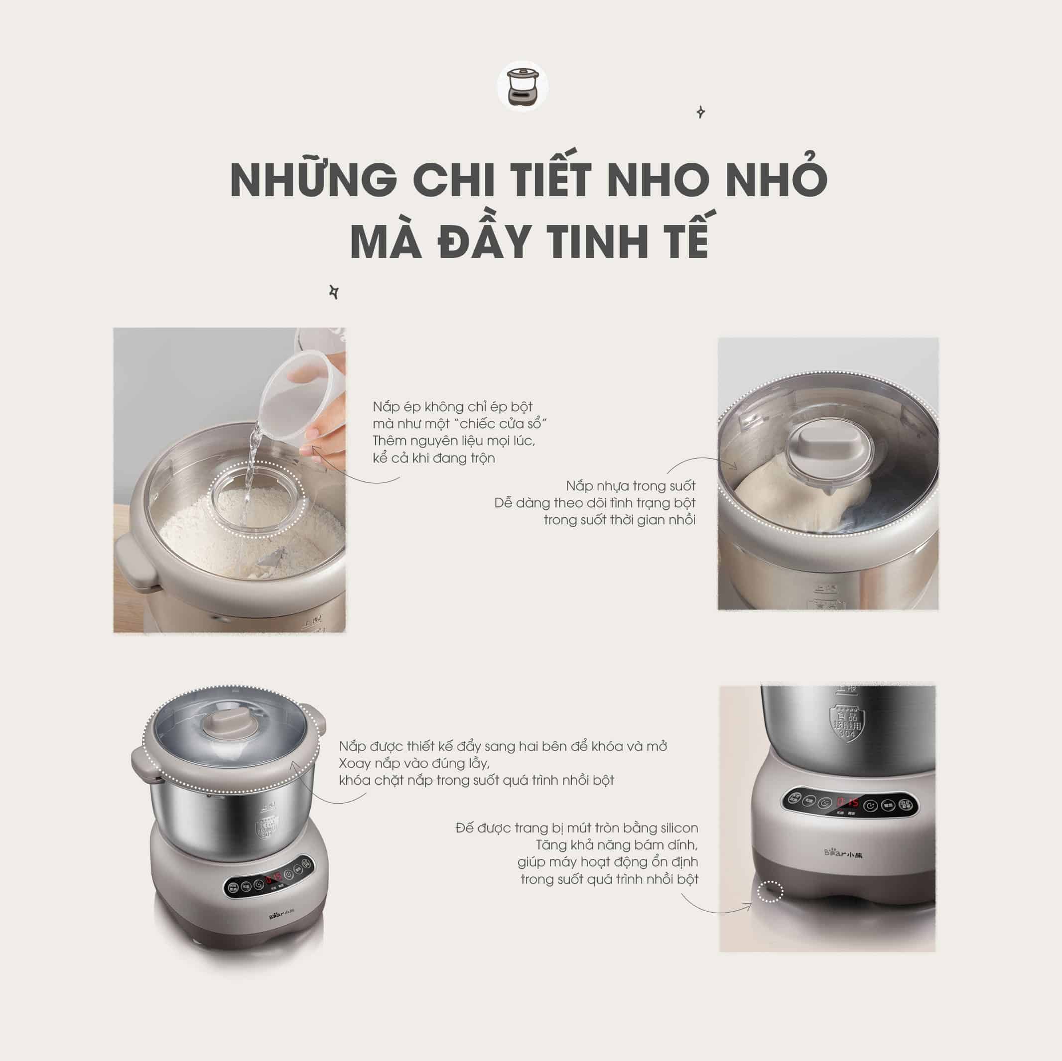 Máy nhồi trộn bột Bear 7L nhào bột, ủ bột tự động, âu trộn thép không gỉ – Hàng chính hãng bảo hành 18 tháng 6 Lý do nên mua MÁY NHỒI TRỘN BỘT BEAR