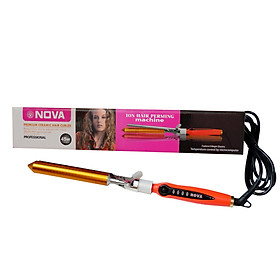 Máy uốn tóc Nova lõi sứ có trục uốn được phủ gốm sứ cao cấp giúp máy nóng cực nhanh, bề mặt gốm không chỉ giúp bạn uốn xoăn mà còn có ưu điểm chống hư tổn hoặc làm xơ, chẻ ngọn tóc. Tay cầm bằng nhựa có ghi các mức nhiệt, phần kẹp tóc xoay 360 độ giúp bạn thao tác dễ dàng hơn. Máy có 4 nấc nhiệt độ: 160-180-200-220 độ để bạn lựa chọn cho phù hợp với chất tóc của bạn. Chiều dài lô uốn dài 18 cm cho bạn thoải mái uốn xoăn cả mái tóc dài. Sản phẩm có tông màu vàng đồng trẻ trung phù hợp với bạn gái. Đây sẽ là “trợ thủ đắc lực” cho bạn trong những dịp đi tiệc, dạo phố hoặc muốn thay đổi kiểu tóc mỗi sáng đến công sở. Với kích thước nhỏ, gọn, nhẹ…máy uốn tóc có thể trở thành người bạn, luôn có mặt trong túi xách để cùng bạn “đi du lịch” hay đến bất kì nơi đâu.   Các bước thực hiện: – Bước 1: Trước tiên gội đầu sạch, sau đó sấy cho tóc khô vừa. – Bước 2: Bạn chia phần tóc ở phía sau đỉnh đầu và cố định bằng kẹp. Nếu tóc nhiều thì nhớ chọn loạI kẹp to để giữ cho tóc không bị bung ra. – Bước 4: Chia đều mỗi phần tóc của mỗi bên tóc làm 2, uốn thêm lần nữa giống thao tác ở bước 3. Nhẹ nhàng lấy máy uốn ra khỏi tóc. – Bước 5: Tiếp tục uốn phần tóc ở đỉnh đầu theo hướng cuộn ngược trở lại. Chú ý cầm chắc máy uốn, điều phối tay linh hoạt và di chuyển máy một cách nhẹ nhàng. – Kết thúc, xịt keo làm bóng, mượt tóc.