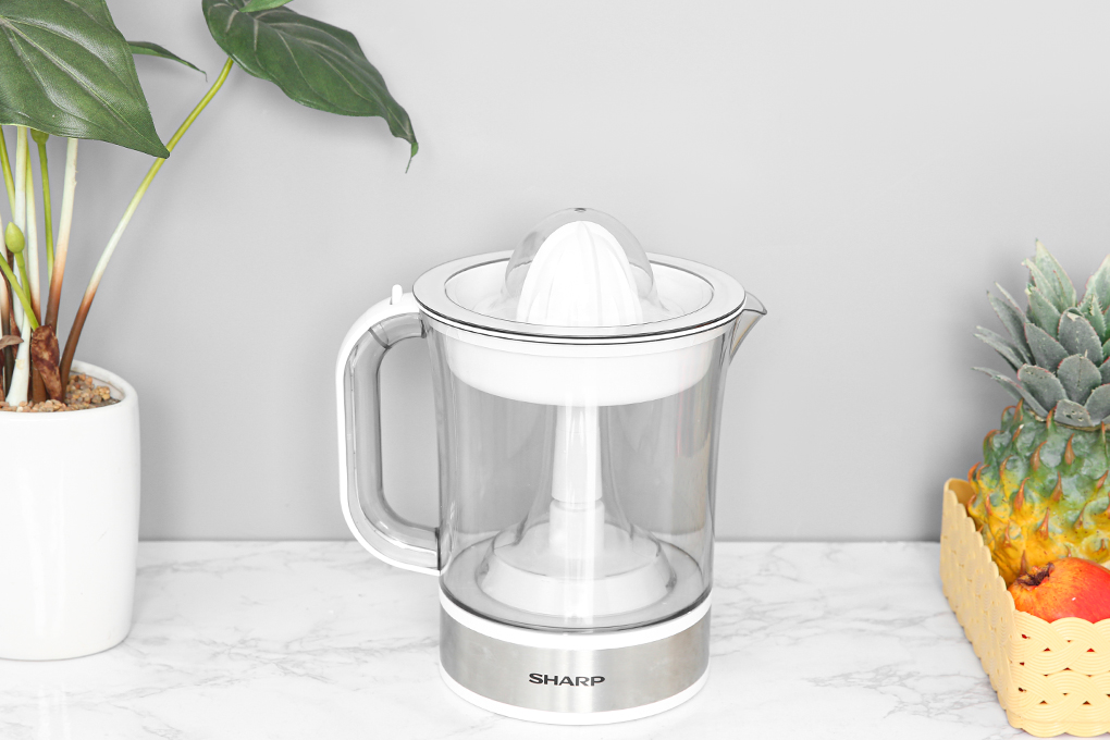 Máy vắt cam Sharp thiết kế gọn nhẹ, màu trắng sáng tươi trẻ, có tay cầm chắc chắn Chuyên dụng để vắt các loại hoa quả họ cam như cam, bưởi, quýt, chanh,… đáp ứng nhu