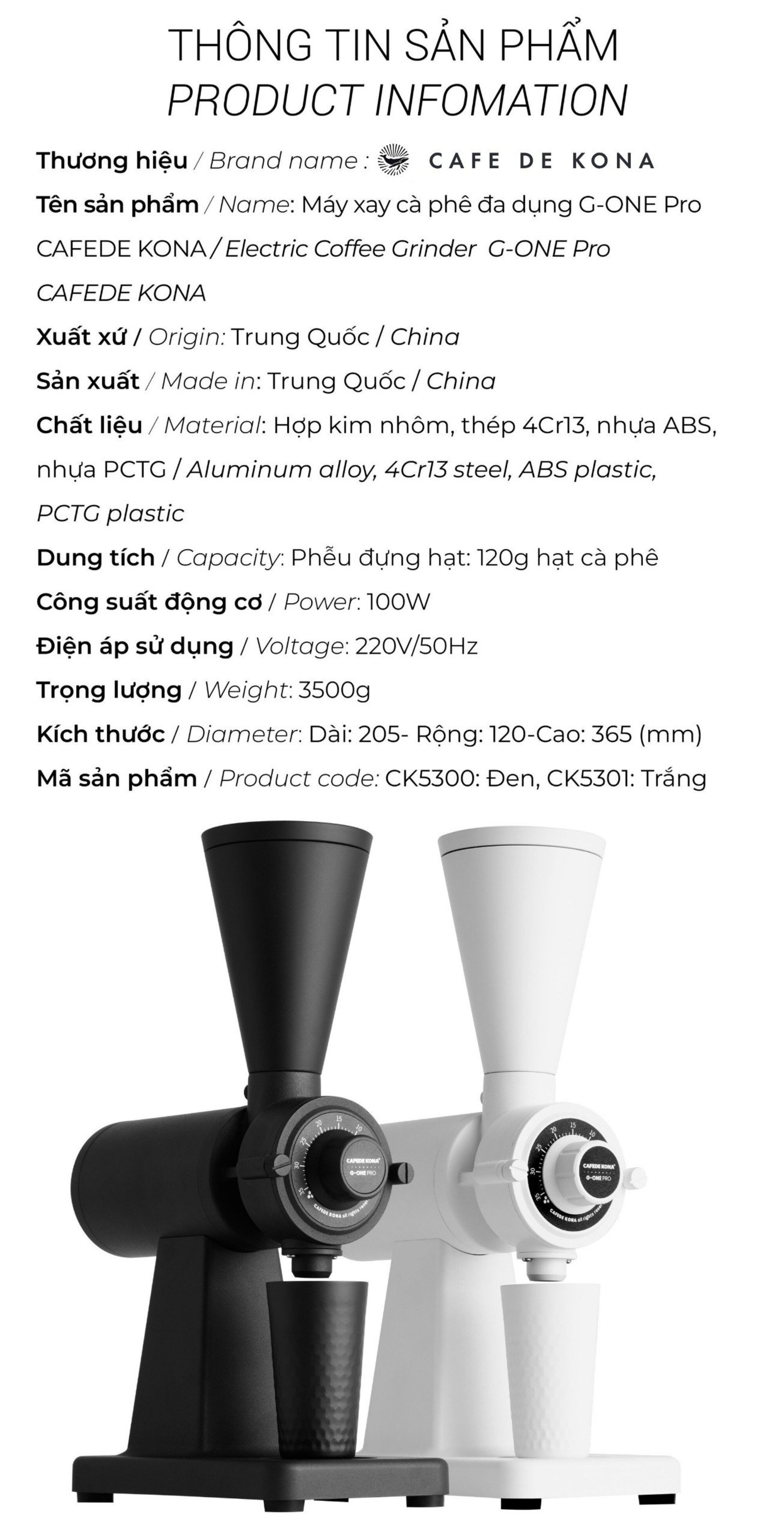MÁY XAY CÀ PHÊ G-ONE PRO CAFE DE KONA