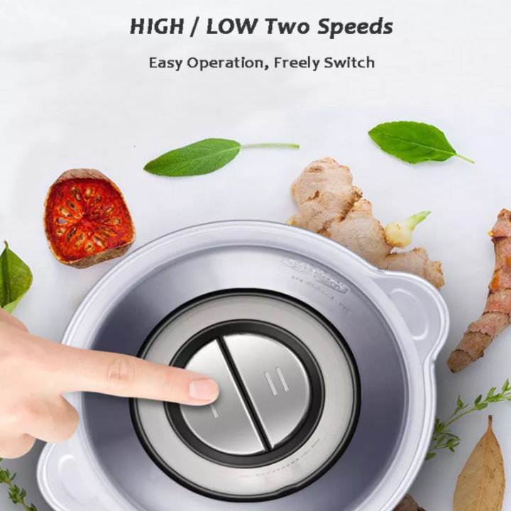 - Tốc độ II: Lưỡi dao quay nhanh thích hợp xay các thực phẩm cứng: Thịt, hạt cứng, cà rố Chất liệu cao cấp - Cối xay sử dụng inox 304 100% không làm biến đổi dinh dưỡng của thực phẩm, an toàn cho sức khỏe. Dung tích 2L, dễ dàng tháo lắp và lau chùi sau khi sử dụng