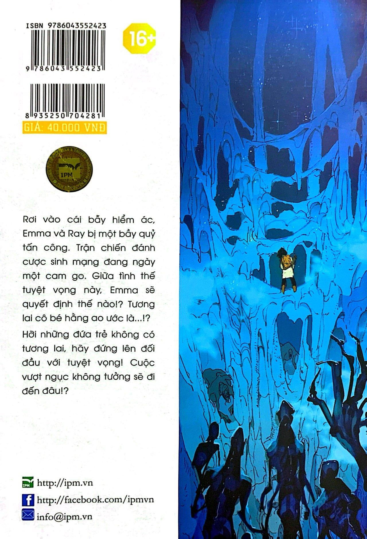 Rơi vào cái bẫy hiểm ác, Emma và Ray bị một bầy quỷ tấn công. Trận chiến đánh cược sinh mạng đang ngày một cam go. Giữa tình thế tuyệt vọng, Emma sẽ quyết định thế nào!? Tương lai cô bé mong muốn là…!?