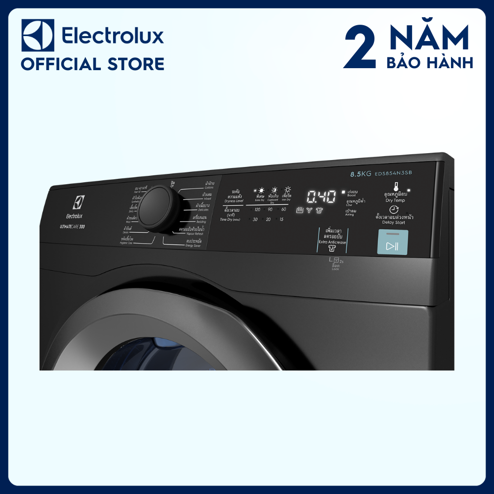 Thông số kỹ thuật Máy sấy quần áo Electrolux 8.5 kg EDS854J3WB Trắng Đặc điểm sản phẩm Model: EDV854J3WB Màu sắc: Trắng Nhà sản xuất: Electrolux Xuất xứ: Thái Lan Thời gian bảo hành: 24