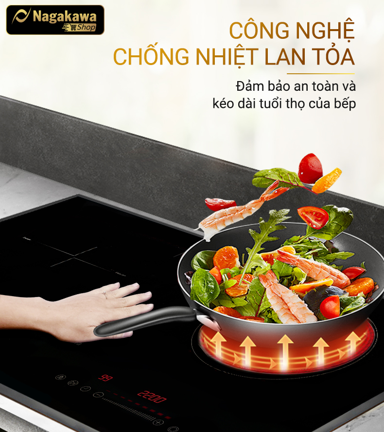 Các chuyên gia bếp của Nagakawa đã nghiên cứu để đưa chức năng này vào bếp đôi điện từ hồng ngoại Nagakawa NAG1252M, giải quyết và ngăn chặn nhiệt độ nóng của bếp hồng ngoại tỏa ra, tránh làm ảnh hưởng đến hệ thống mạch điều khiển và tuổi thọ của bếp.
