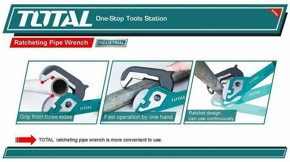 Thương hiệu đồ nghề và máy móc Total ngày càng khẳng định vị thế của mình trên thị trường, cạnh tranh thị phần với những nhãn hiệu có danh tiếng xưa giờ luôn. Total sẽ chứng minh hàng rẻ nhưng có chất lượng tốt là có thật! Total tools - Không cần bỏ số tiền lớn nhưng vẫn có cho mình những đồ nghề chất lượng. Từ những món đồ nghề đơn giản như búa, tuốc nơ vít, lục giác, cờ lê mỏ lết… được sử dụng nhiều trong gia đình cho đến những máy móc dùng điện và pin Lithium-Ion như máy khoan, máy đục bê tông, máy cưa lọng, máy cắt sắt, máy mài góc… công suất mạnh, hay được sử dụng trong nhiều ngàng công nghiệp nặng. Tất cả sản phẩm do Total sản xuất đếu khá là chất lượng và có mức giá rẻ, không như các ông lớn khác là Makita, Stanley… sản phẩm tuy tốt nhưng có giá thánh khá là đắt! Bạn thắc mắc vì sao mà công cụ - dụng cụ Total có giá rẻ ư?! Vì họ không tốn bất cứ tiền quảng cáo, quảng bá thương hiệu nào cả, từ đó mà giá thành sản phẩm rẻ! Thông số kĩ thuật -Mã sản phẩm: -Nhà sản xuất: Total -THT171102 Size: 10 inch /250mm,Đường kính kẹp : 14-40mm, Chất liệu: thép carbon, đen bóng. - 24/T -THT171142 Size: 14 inch /350mm,Đường kính kẹp : 18-52mm, Chất liệu: thép carbon, đen bóng, - 12/T