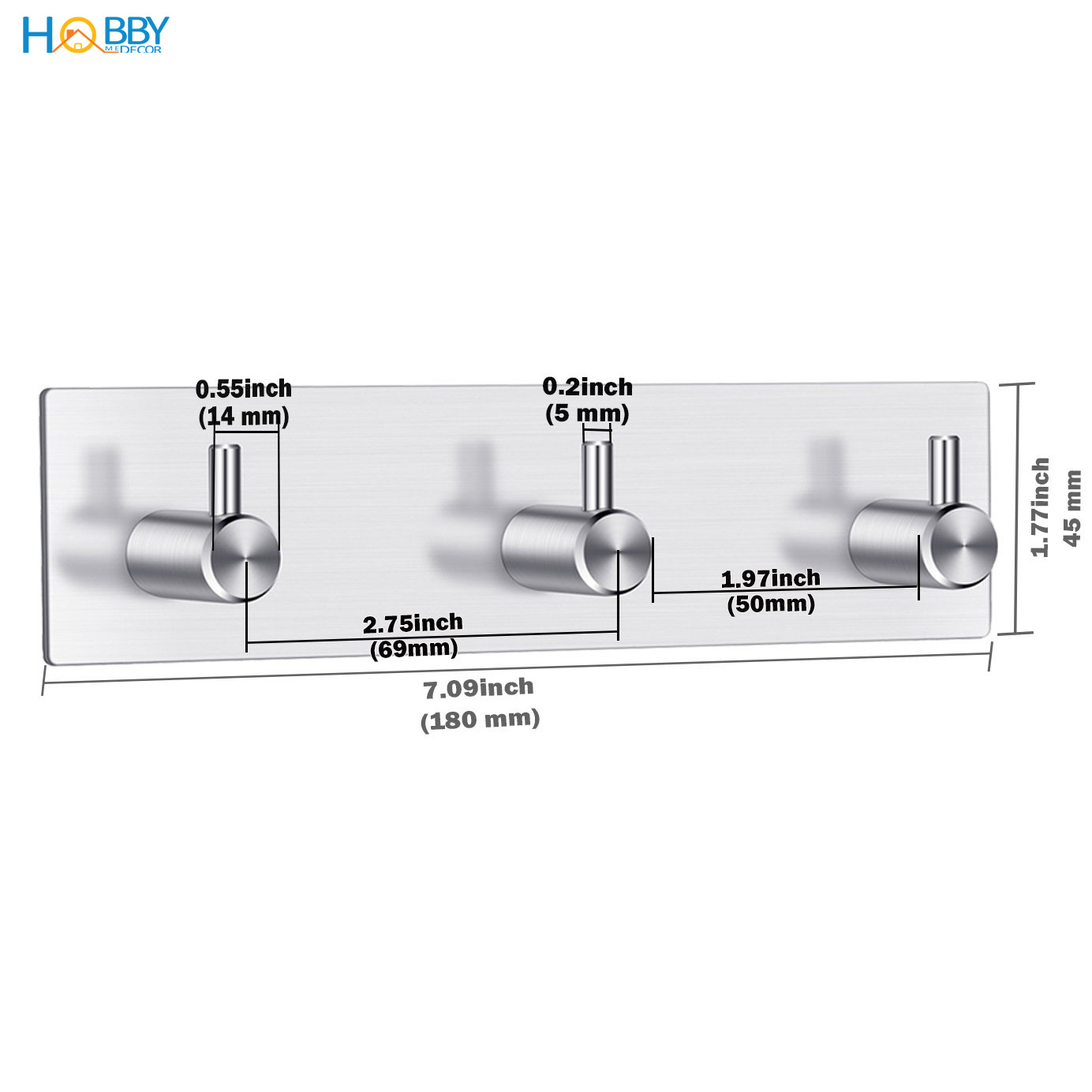 Móc treo quần áo dán tường 3 chấu Inox 304 Hobby Home Decor không rỉ sét kèm keo dán gạch men kính