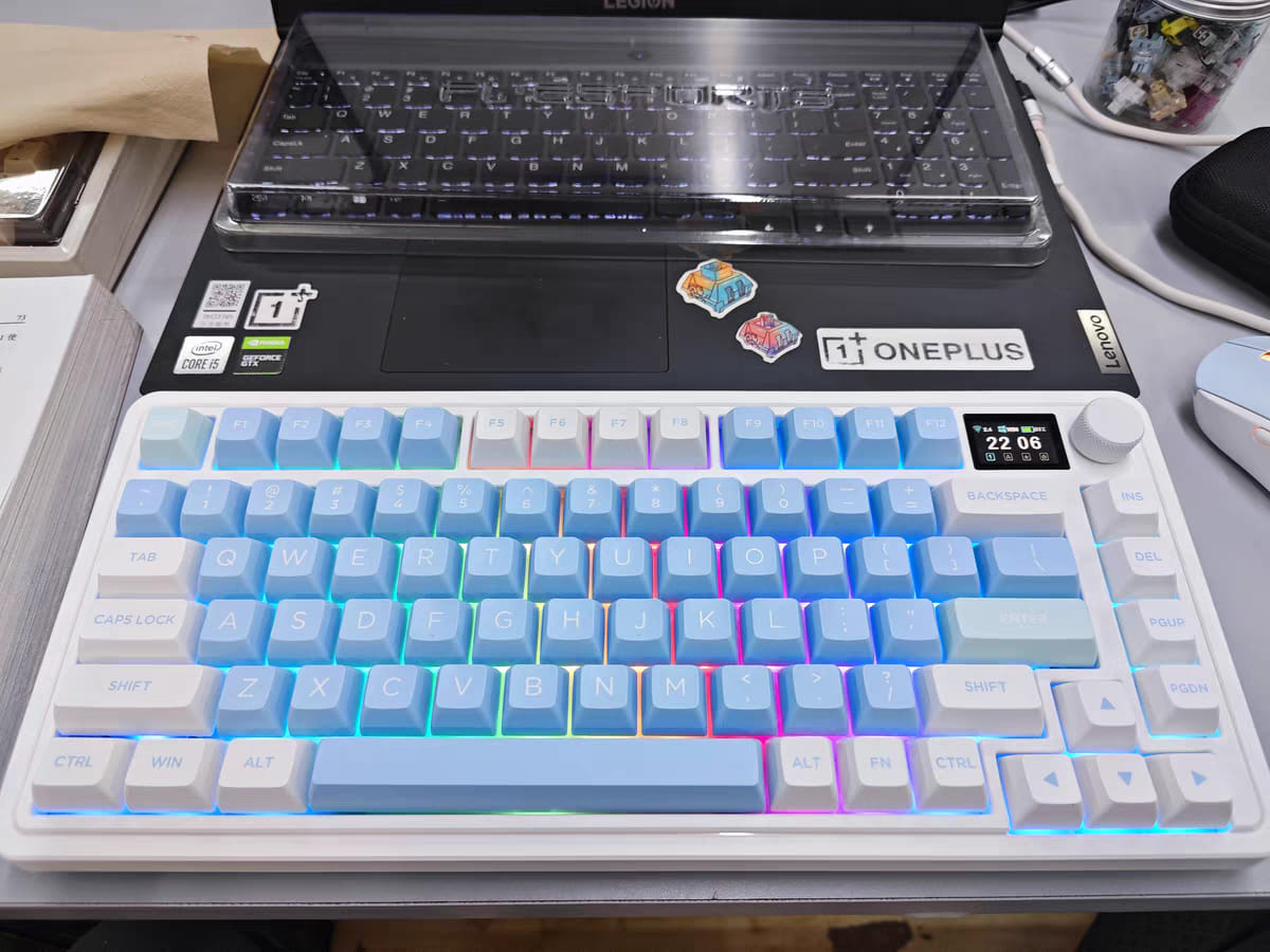 CMK75SAM được hãng FL·Esports vô cùng ưu ái. hãng đã mạnh dạn trạng bị thêm cho em bàn phím này màn hình hiển thị TFT đầy màu sắc. Màn hình TFT này sẽ hiển thị các cài đặt khác nhau như ngày, giờ, chế độ hệ thống đang hoạt động, chế độ kết nối,…Nó cũng có thể được tùy chỉnh với các hình ảnh và hoạt ảnh gif khác nhau. Người dùng có thể tải tối đa 5 hình ảnh và 1 ảnh động gif trên cấu hình bàn phím.