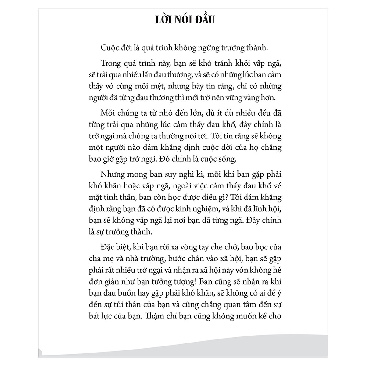 Nhưng mong bạn suy nghĩ kĩ, mỗi khi bạn gặp phải khó khăn hoặc vấp ngã, ngoài việc cảm thấy đau khổ về mặt tinh thần, bạn còn học được điều gì? Tôi dám khẳng định rằng bạn đã có được kinh nghiệm, và khi đã lĩnh hội, bạn sẽ không vấp ngã lại nơi bạn đã từng ngã. Đây chính là sự trưởng thành.